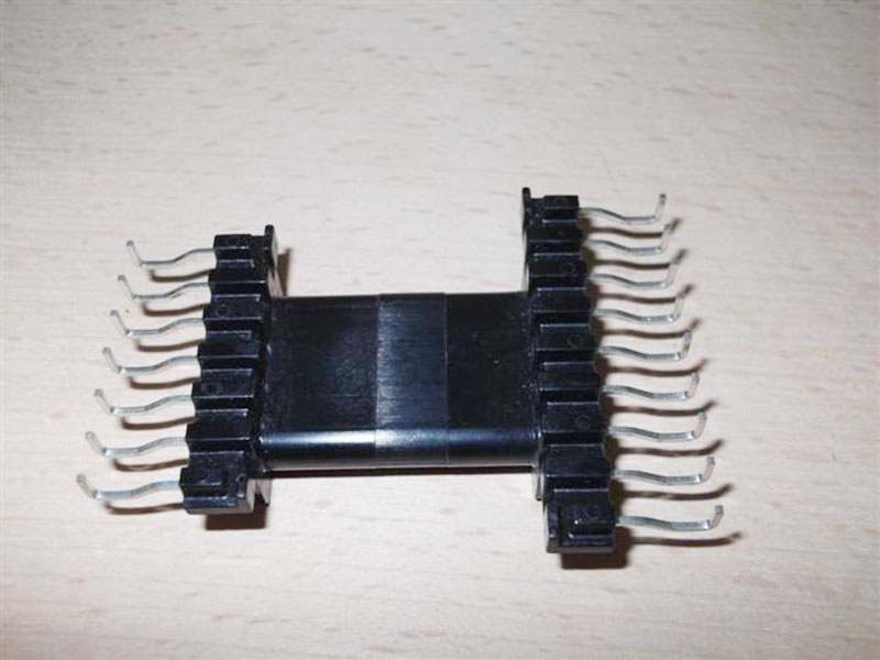 4.骨架中的金屬針腳為變壓器之銅線纏繞的支柱;經過焊錫后與PCB板相連接,在變壓器工作時起到導電的作用。