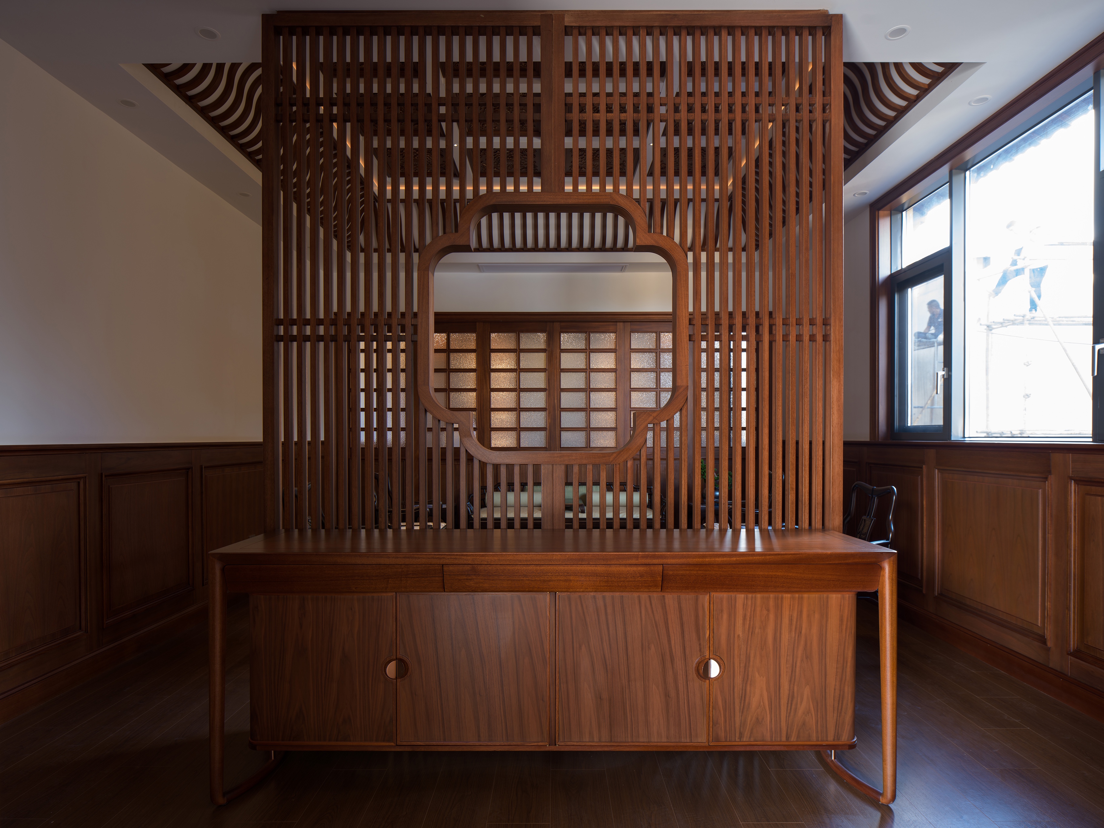 項(xiàng)目對(duì)原有會(huì)客室進(jìn)行拆除重構(gòu),重新規(guī)劃動(dòng)線與空間布局。設(shè)計(jì)以禪意美學(xué)為核心,融入當(dāng)代東方雅致。從硬裝定制到軟裝家具及配飾細(xì)節(jié),皆由亞振團(tuán)隊(duì)悉心統(tǒng)籌、精研打磨,呈現(xiàn)出一個(gè)集接待、茶敘與辦公等多功能于一體的全新空間。